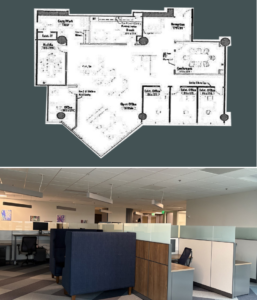 - Flexible Layout consisting of 4 Offices, 2 Conference Rooms, 10 Workstations, Breakroom, & Copy Room