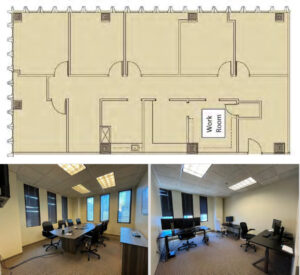 - FF&E count: 5 offices, 14 desks, conference room, break room, IT closet